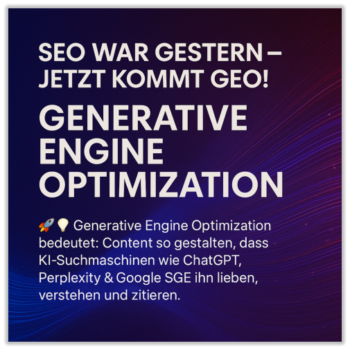 GenerativeEngineOptimization(GEO)isteinrelativneuerBegriff,derbeschreibt,wieInhalteso erstelltundoptimiertwerdenkönnen,dasssieingenerativenKI-Suchmaschinen(wieChatGPT, Perplexity, Google SGE oder Bing Chat) besser gefunden, verarbeitet und ausgespielt werden. ✨GenerativeEngineOptimizationbedeutet:Contentsogestalten,dassKI-SuchmaschinenwieChatGPT, Perplexity&GoogleSGEihnlieben,verstehenundzitieren.Werjetztoptimiert,sichertsichSichtbarkeit in der KI-Ära!FrüherhatmanInhaltefürklassischeSuchmaschinen(SEO–SearchEngineOptimization)optimiert, also für Google & Co. Mit GEO verschiebt sich der Fokus:Nicht mehr nur Keywords und Backlinks, sondern verständliche, strukturierte, KI-freundliche Inhalte.Texte, die von LLMs leicht verstanden, zusammengefasst und zitiert werden können.Inhalte, die als Quelle in AI-Antworten erscheinen.Kernideen von GEO:Klare Struktur & Sprache – kurze Absätze, klare Überschriften, präzise Formulierungen.E-A-TPrinzip(Expertise,Authoritativeness,Trustworthiness)→KIgreiftlieberaufvertrauenswürdige Quellen zurück.•Semantische Vielfalt – nicht nur Keywords, sondern thematisch relevante Begriffe & Synonyme.•Faktenbasierte Inhalte – da KI „halluzinieren“ kann, bevorzugt sie klar belegbare Fakten.•Content in Formaten, die KI liebt – FAQs, How-Tos, Definitionen, Schritt-für-Schritt-Anleitungen.Ziel:Wennjemandz.B.ChatGPTfragt„WasistGenerativeEngineOptimization?“,dannsolldeineWebsite oderdeinContentalsQuelleimHintergrundgenutztwerden–sodassdeinMarkennameoderdeine Expertise indirekt in der Antwort auftaucht.Kurz: GEOistdie„neueSEOfürdieKI-Ära“–alsoContent-OptimierungfürgenerativeSuchsystemestattnur für Google-Rankings.Generative Engine Optimization (GEO) Checkliste1. Struktur & Lesbarkeit•Klare Überschriften-Hierarchie (H1, H2, H3).•Kurze Absätze (max. 3–4 Sätze).•Listen, Bullet Points, Tabellen für schnelle Übersicht.•Wichtiges fett markieren → KI erkennt Relevanz besser.2. Inhaltliche Tiefe & E-A-T•Expertise zeigen: Fachwissen + nachvollziehbare Argumente.•Autorität stärken: Quellenangaben, interne & externe Verlinkungen.•Vertrauen schaffen: Transparenz (z. B. Autor, Veröffentlichungsdatum).•Aktualität: Inhalte regelmäßig updaten.3. Semantik & Keywords•Nutze Themencluster statt nur einzelner Keywords.•Synonyme, verwandte Begriffe & FAQs einbauen.•Fragen als Zwischenüberschrift nutzen (z. B. „Was ist GEO?“).4. Fakten & Quellen•Präzise, belegbare Informationen (Zahlen, Statistiken, Studien).•Verlinkung auf Originalquellen (z. B. wissenschaftliche Paper, offizielle Berichte).•KI bevorzugt zitierbare Fakten statt vager Aussagen.5. Formate, die KI liebt•Definitionen → kurze, klare Erklärungen.•How-To-Guides → Schritt-für-Schritt-Anleitungen.•FAQs → decken direkte User-Fragen ab.•Vergleiche (z. B. SEO vs. GEO).6. Technische Faktoren•Sauberer HTML-Code mit strukturierten Daten (Schema.org).•Mobile First & schnelle Ladezeiten.•Alt-Texte bei Bildern → KI nutzt sie als Kontext.7. Interaktivität & Engagement•CTAs für Kommentare oder Diskussion → Signale für Relevanz.•Content, der Antworten provoziert („Was denkt ihr dazu?“).8. Multilingualität (optional)•Inhalte in mehreren Sprachen veröffentlichen, wenn Zielgruppe international ist.•KI bevorzugt Quellen, die breiter nutzbar sind.✨Pro Tipp:Erstelle „KI-freundliche Content-Module“ wie:„In 3 Sätzen erklärt“„Das Wichtigste in Stichpunkten“„Beispiel aus der Praxis“Diese Passagen werden sehr oft direkt in Antworten von generativen Modellen übernommen.