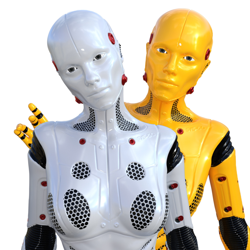 2 traurig guckende Roboter HOTLINE 01525-4070694